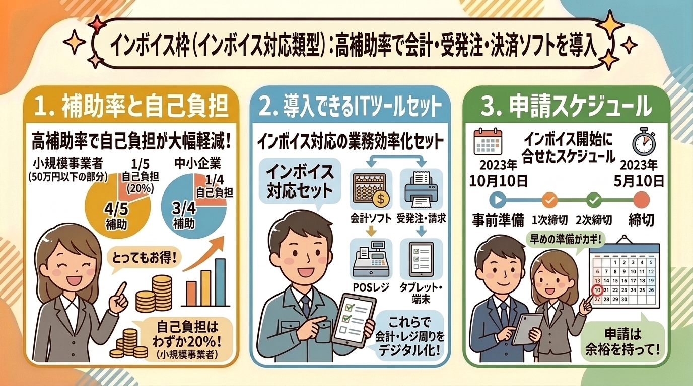 通常枠のスケジュールを確認したら、次はインボイス枠の内容を見ていきましょう。補助率の高さに驚く方も多いはずです。