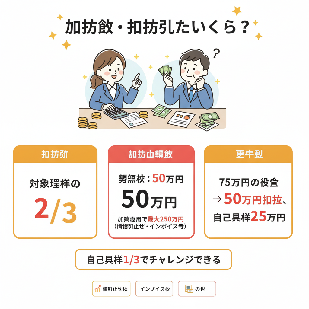 補助額の詳細(加算枠・計算方法)は → いくらもらえる?補助額の計算方法